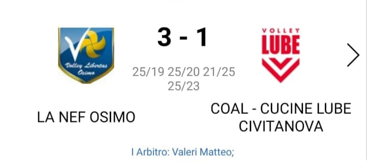 Vince anche la serie D di coach Corrado Gambini, che si impone per 3-1 sulla COAL – Cucine Lube. I primi 2 set sono stati punto a punto fino al 10 pari poi i ragazzi della LA NEF sono riusciti ad ottenere i break decisivi soprattutto grazie ad un Bobò efficace al centro sia in attacco che a muro.Terzo set con i ragazzi osimani che si sono un po’ adagiati e con qualche errore di troppo hanno permesso ai Civitanovesi di riaprire la gara.Quarto parziale punto a punto fino al 21-22 per gli ospiti che hanno subito la grinta dei ragazzi di coach Gambini nel momento più importante della gara che hanno chiuso con un attacco al centro di Notarnicola ben servito da Iachini.