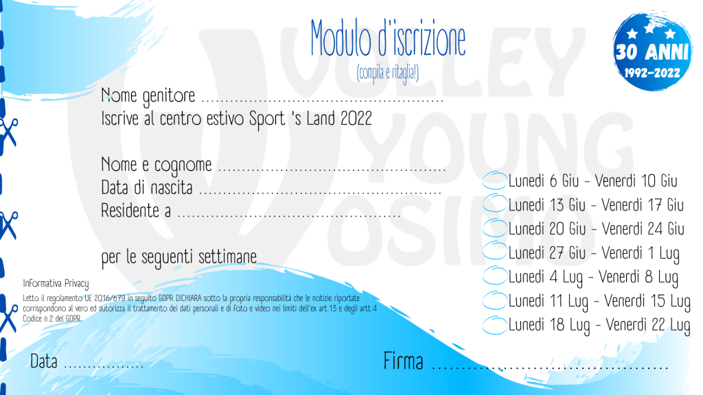 Inviando il modulo sottostante a volleyoungosimo@libero.it
