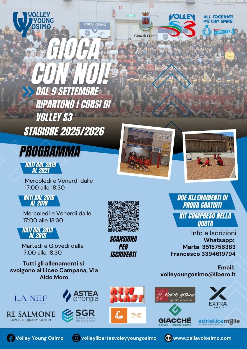 Per info e iscrizioni Marta 3515756383 (segreteria) Francesco 3394619794 (responsabile Volley S3).