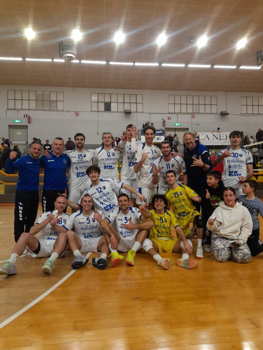 Terzo set con la Nef Re Salmone che parte ancora una volta determinata e piazza subito un allungo importante, 8-3. Qualche sbavatura di troppo dei ”senza testa” riporta sotto i romagnoli, 11-9. Stella trova degli attacchi ficcanti che riportano avanti i suoi, 18-13. Finale in crescendo per La Nef Re Salmone che trova continuita’ con la manovra mentre gli ospiti iniziano a sbagliare molto. Stella e Ferrini nel finale chiudono la questione sul 25-15.